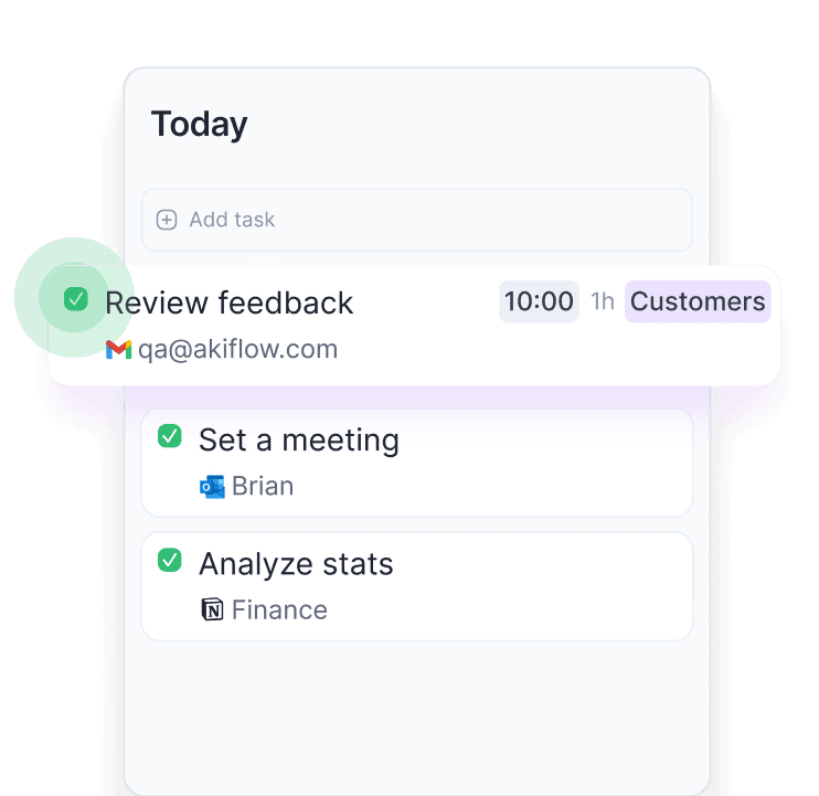 Akiflow is designed around a simple belief: you know your work better than any algorithm. AI should reduce friction, not replace judgment.
